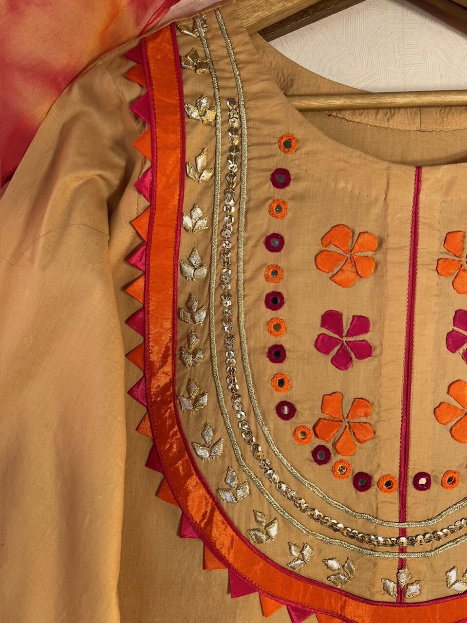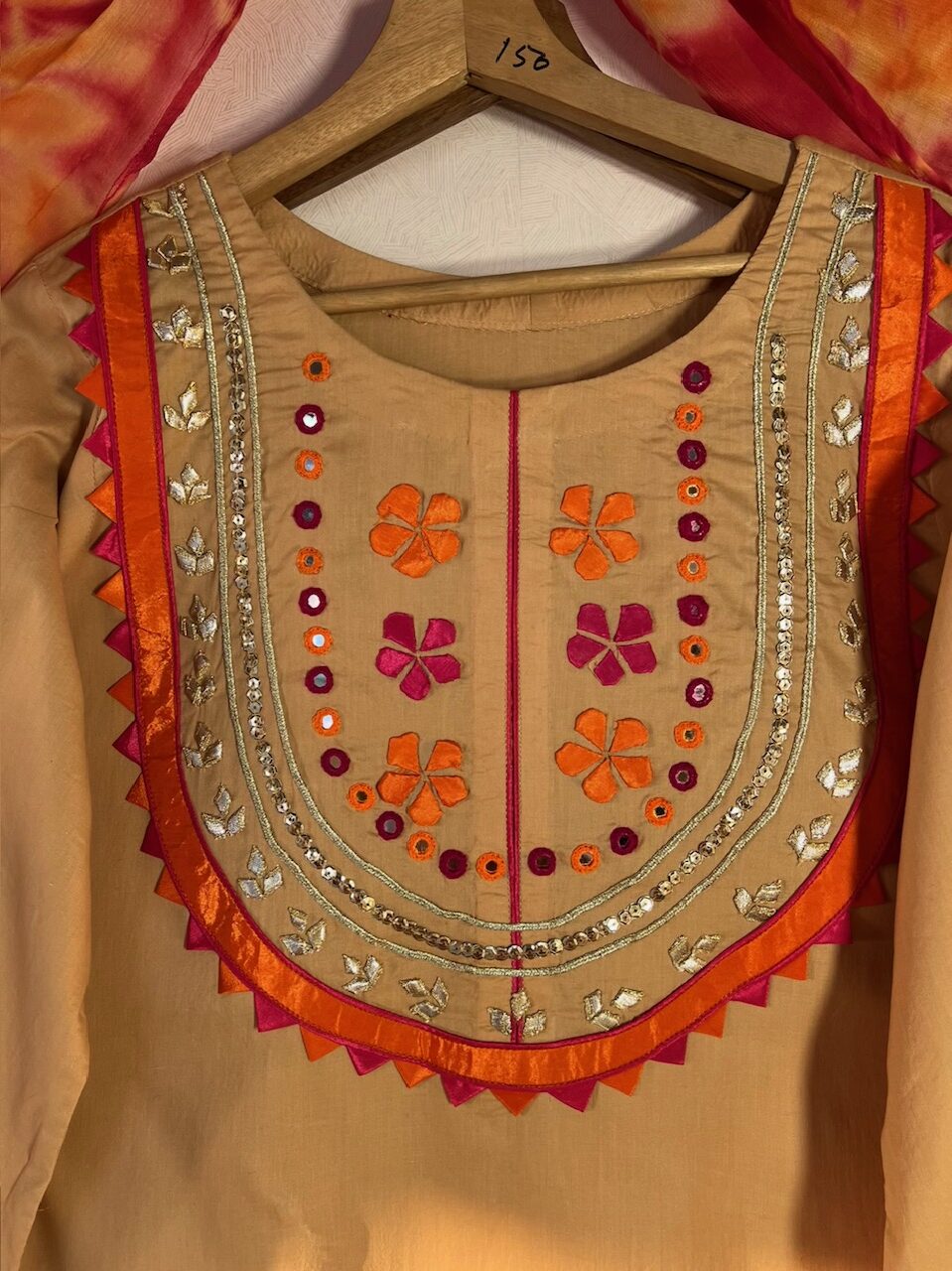 | shirt | multicolour 3d applic with bordering koli Piping and Triangular Sitary |