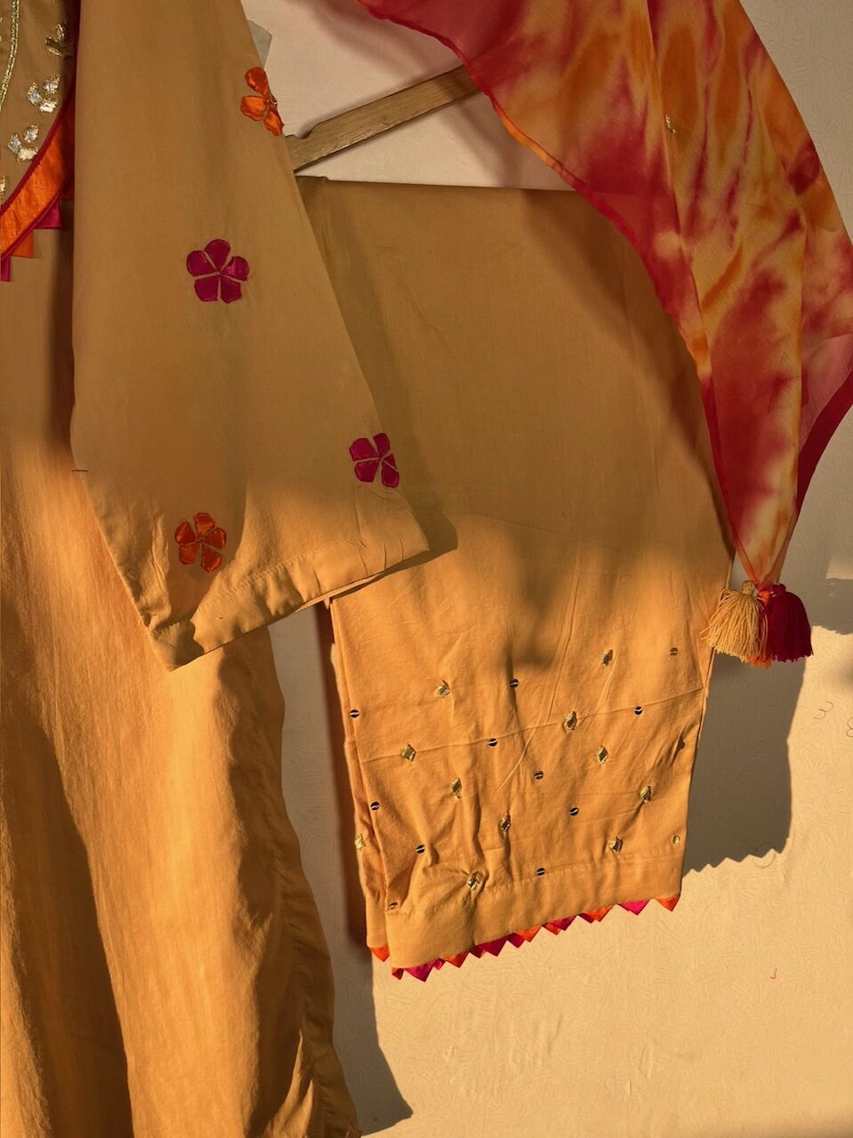 | Dupatta | Dupatta Tie And Dye and sitari and 4 Sided Tessels |