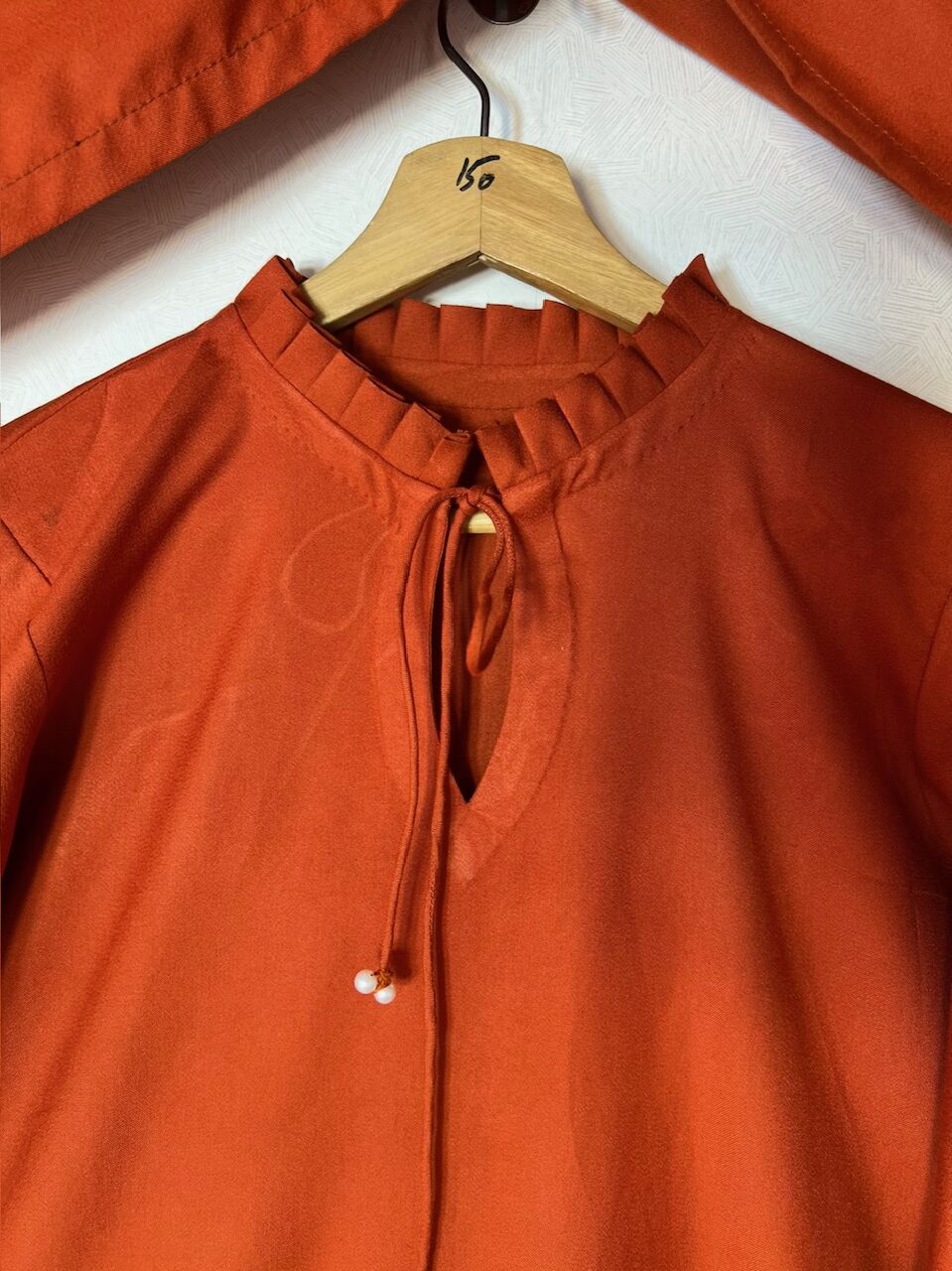 | shirt | Neck line frill collar ban with wavy loop design on sleeves |
