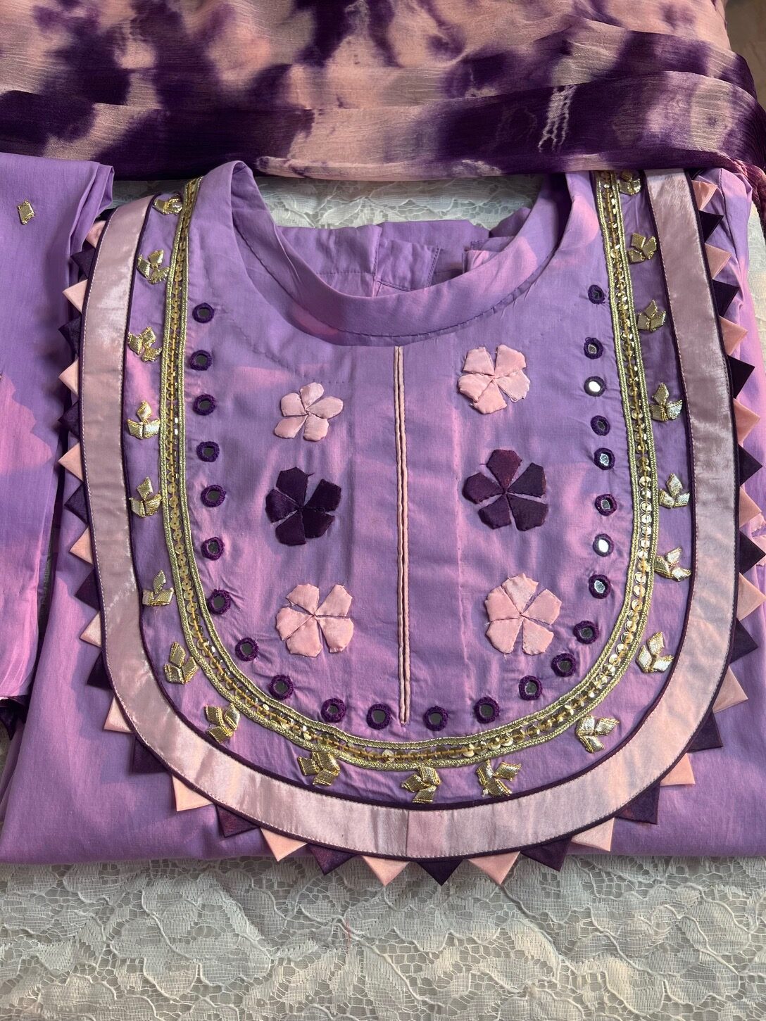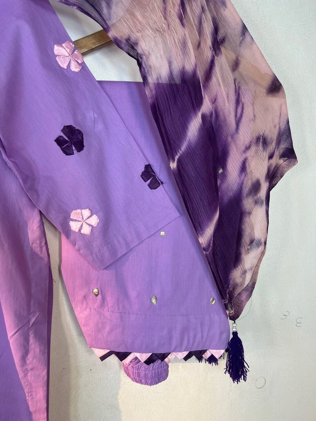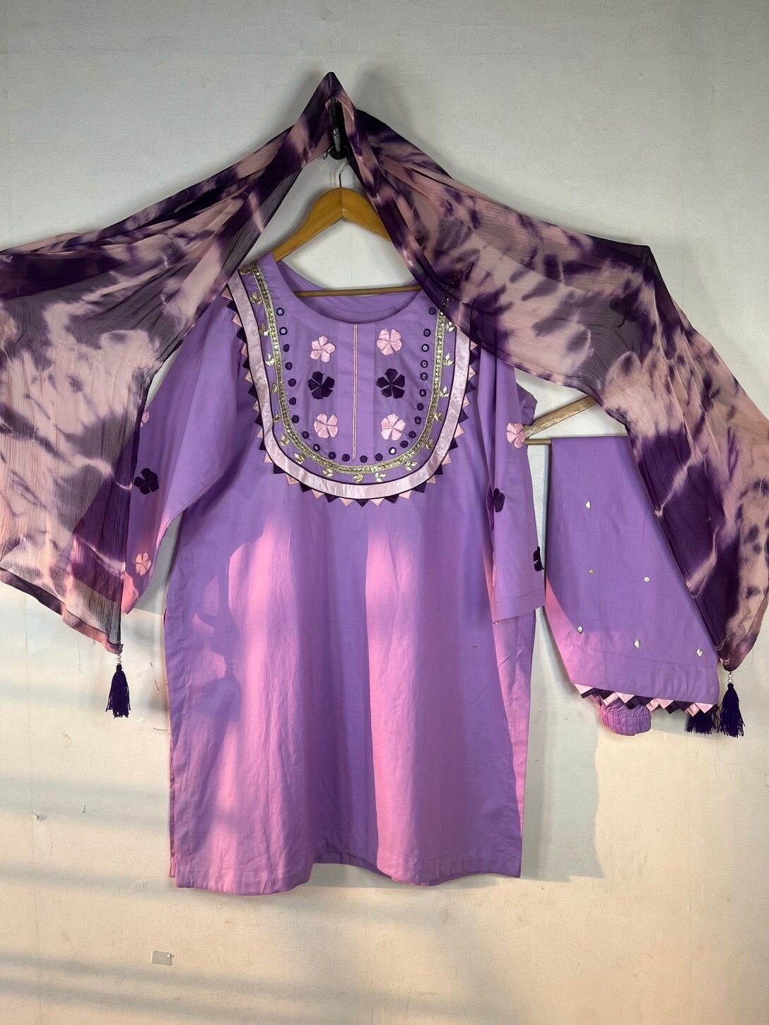 Dupatta Dupatta Tie And Dye and sitari and 4 Sided Tessels