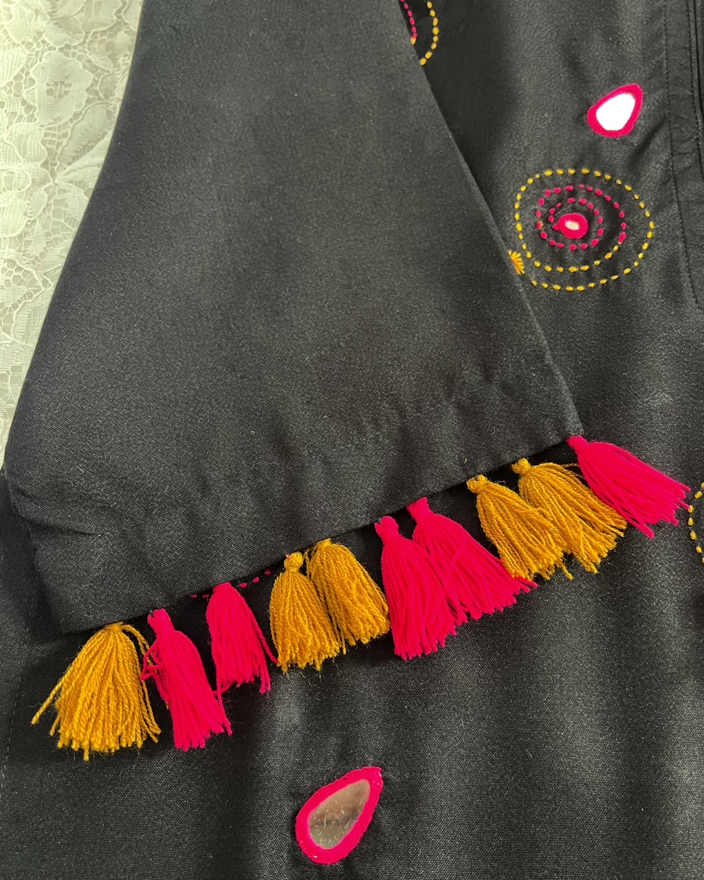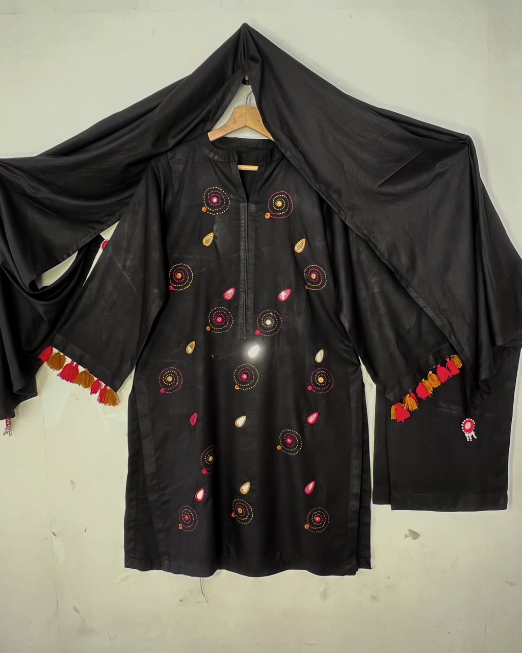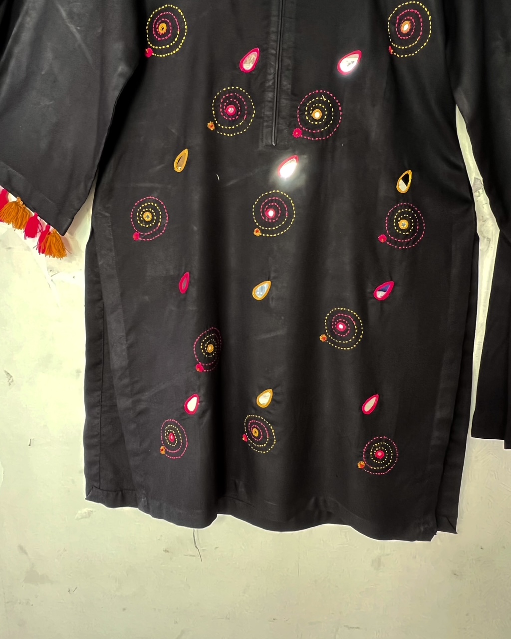 | shirt | Hand Embroidery With Mirror Work And Chackry Design |