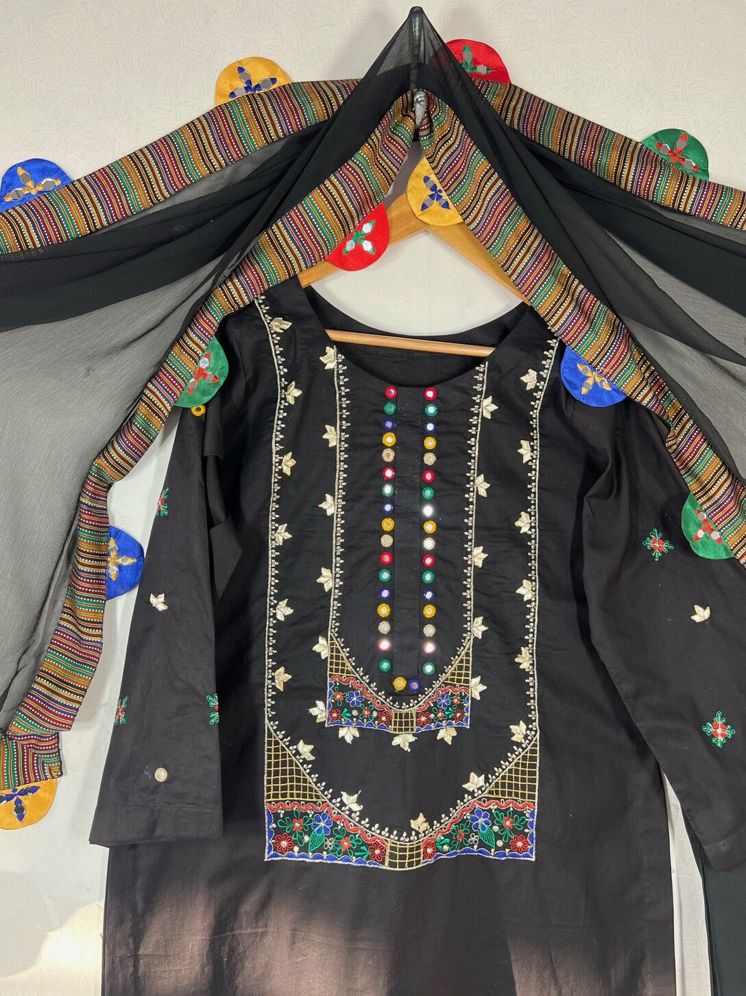 shirt Criss Cross Multi Embroisery With Sheesh Work And Gotta Patti