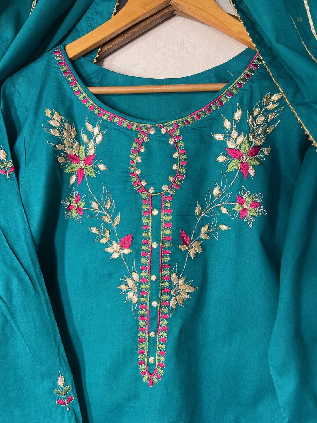 | shirt | Patta Design With Machine Embroidery And Gotta patti |