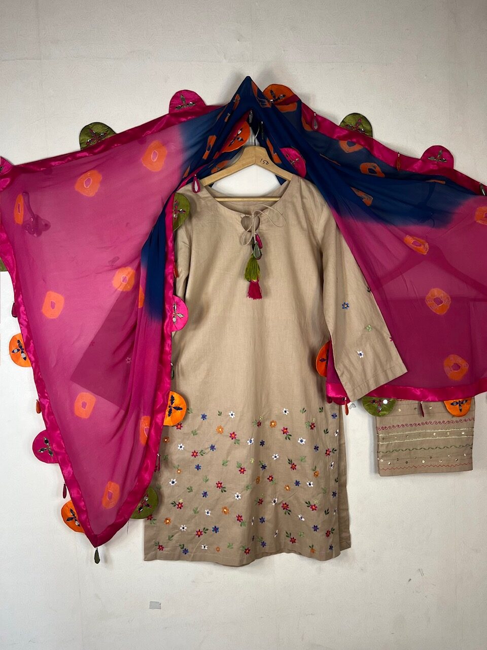 Dupatta Chunnry Dye Dupatta With floral Theme