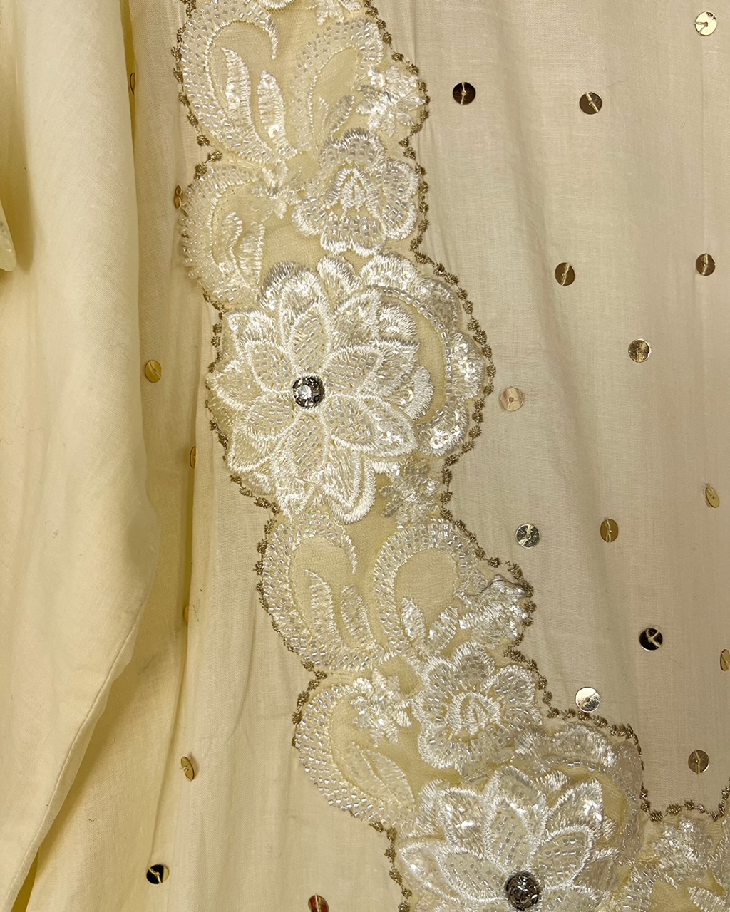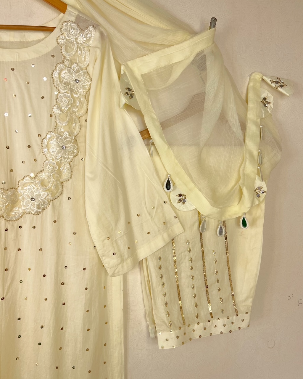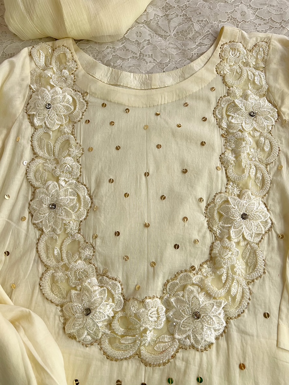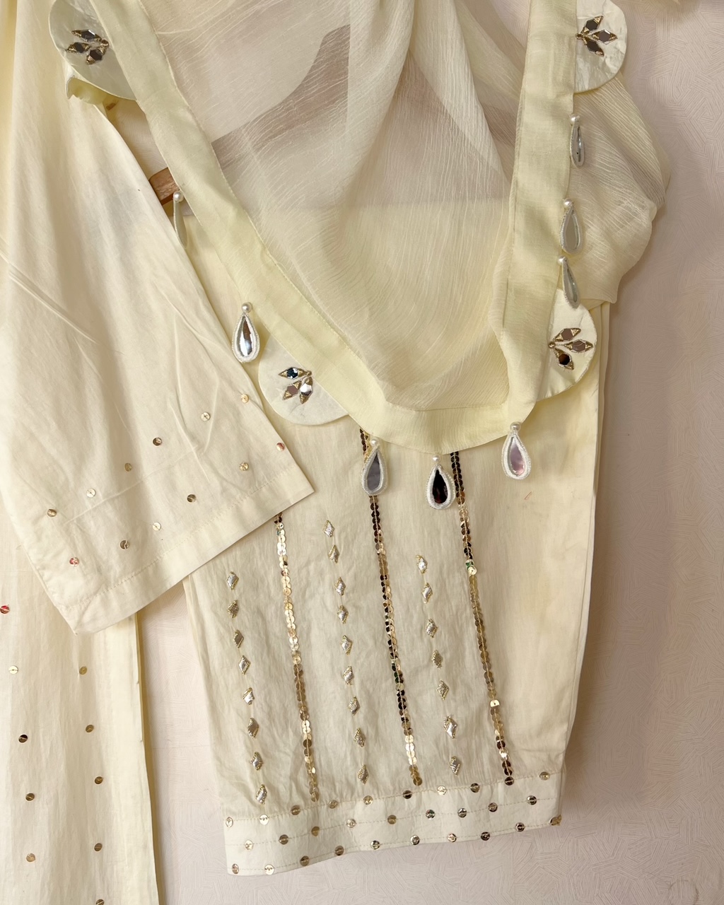 shirt neckline embellished with cut dana  and plate sitari work
