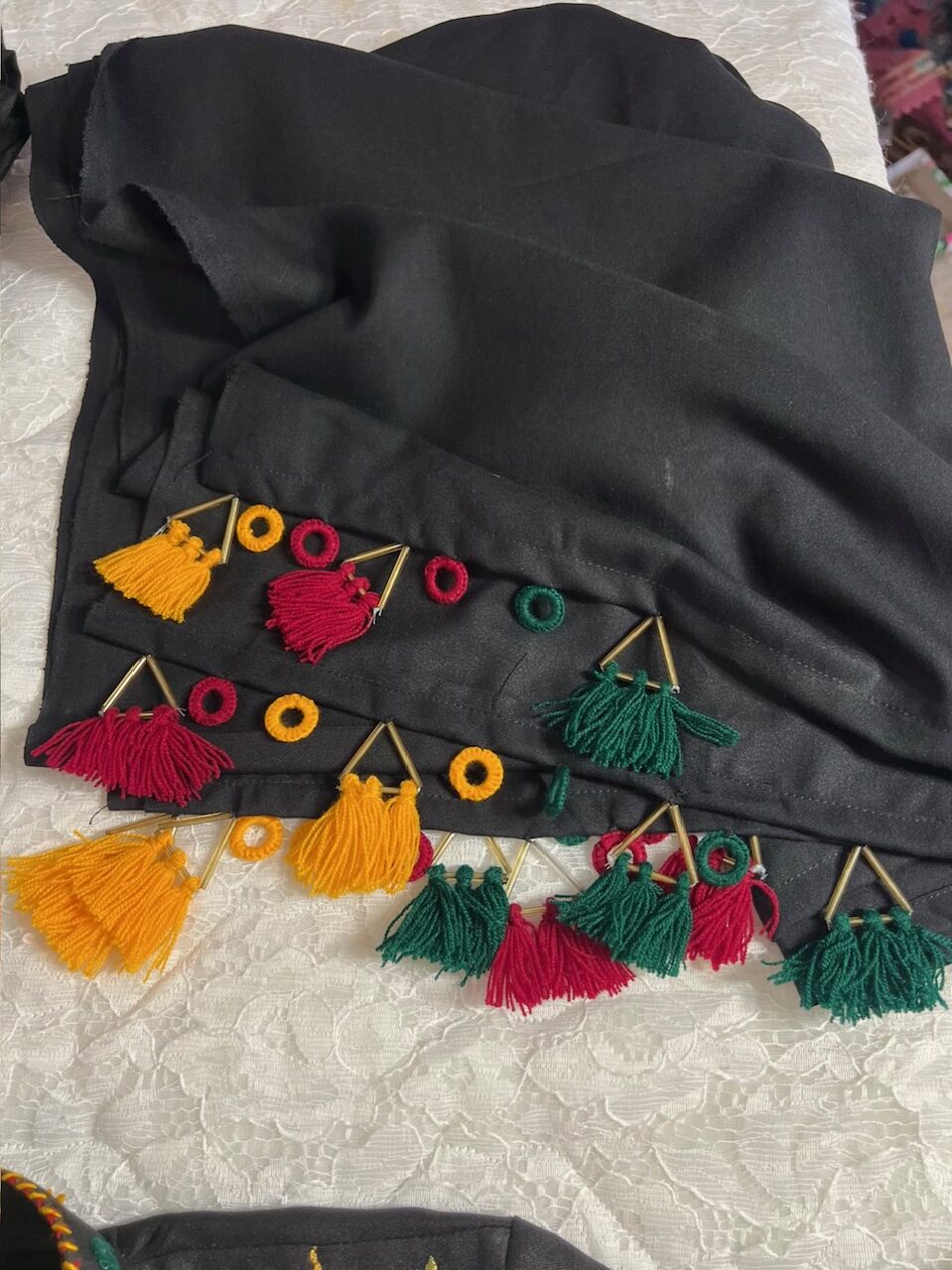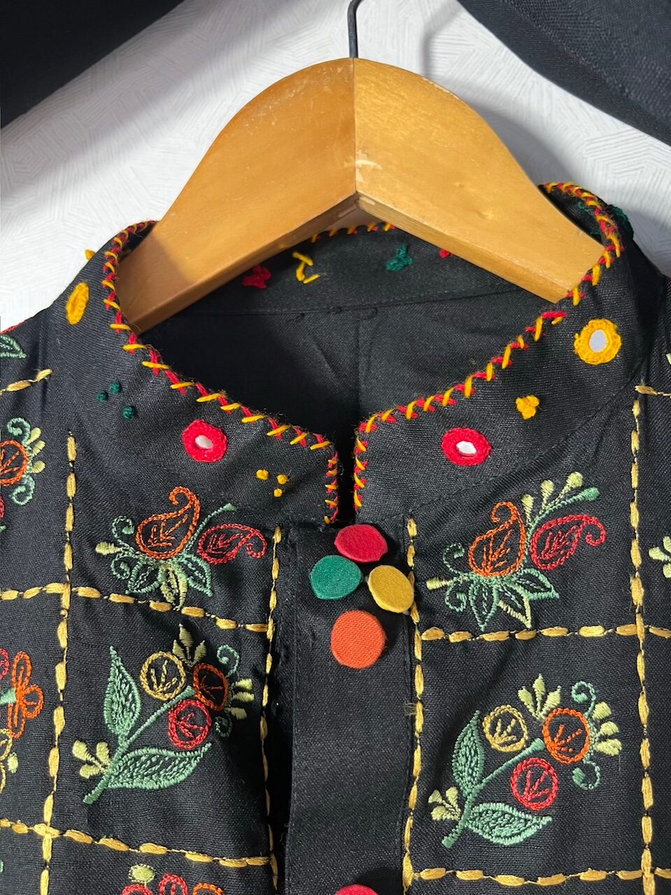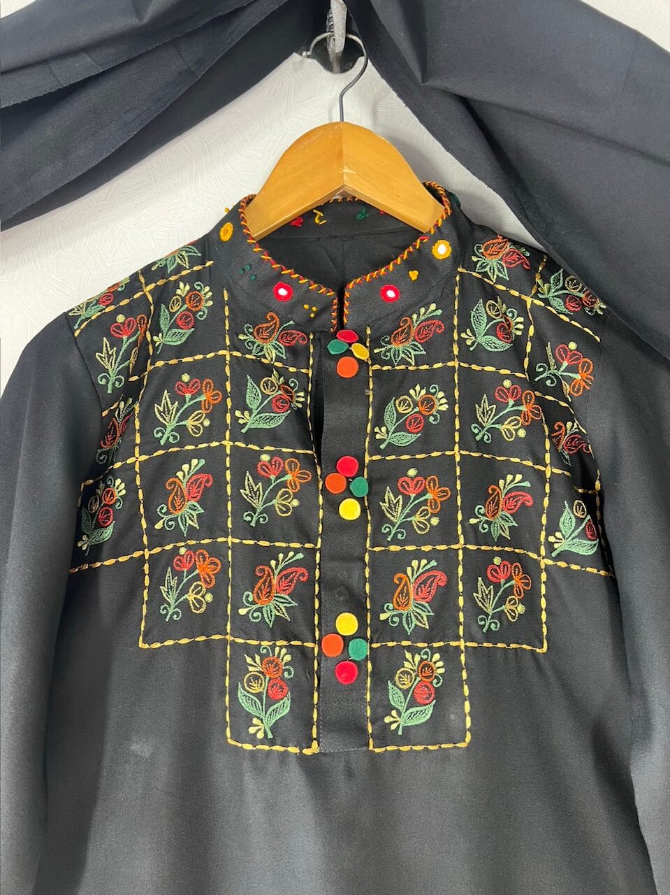 shirt   embroidery with chawal tanka with wool taccles fabric button and mirror work