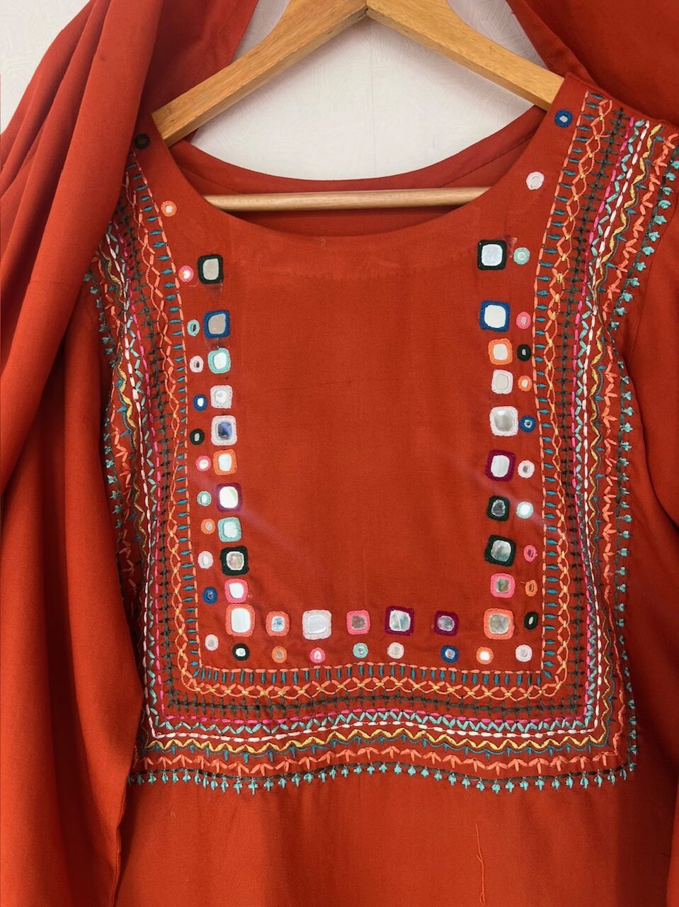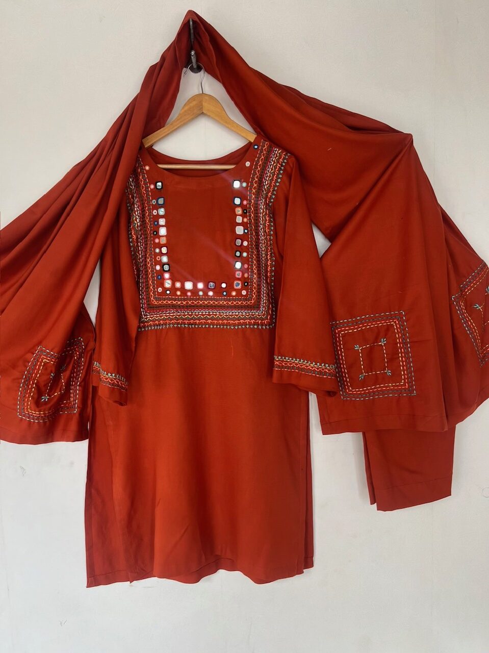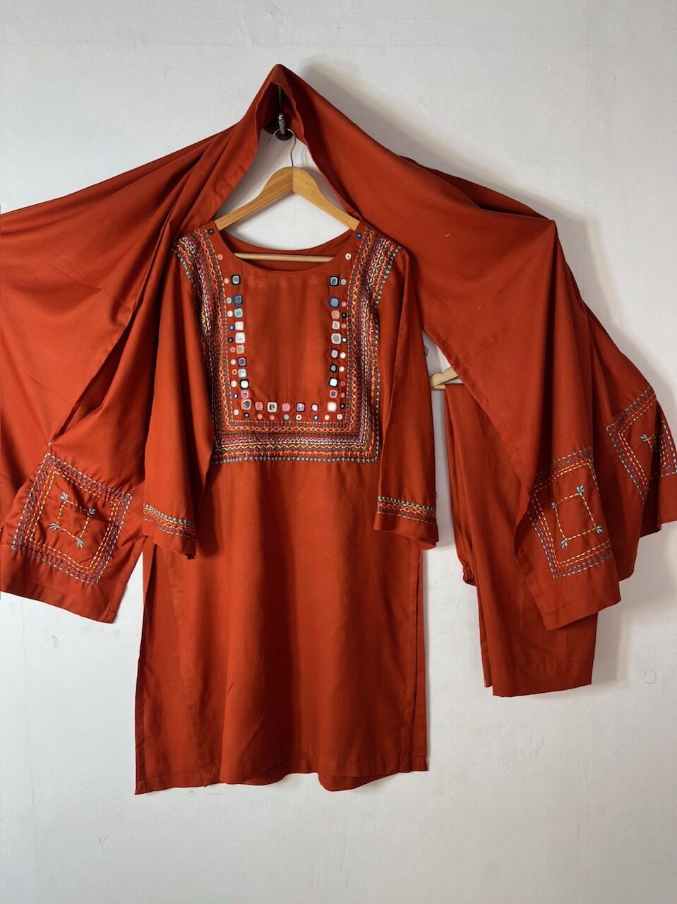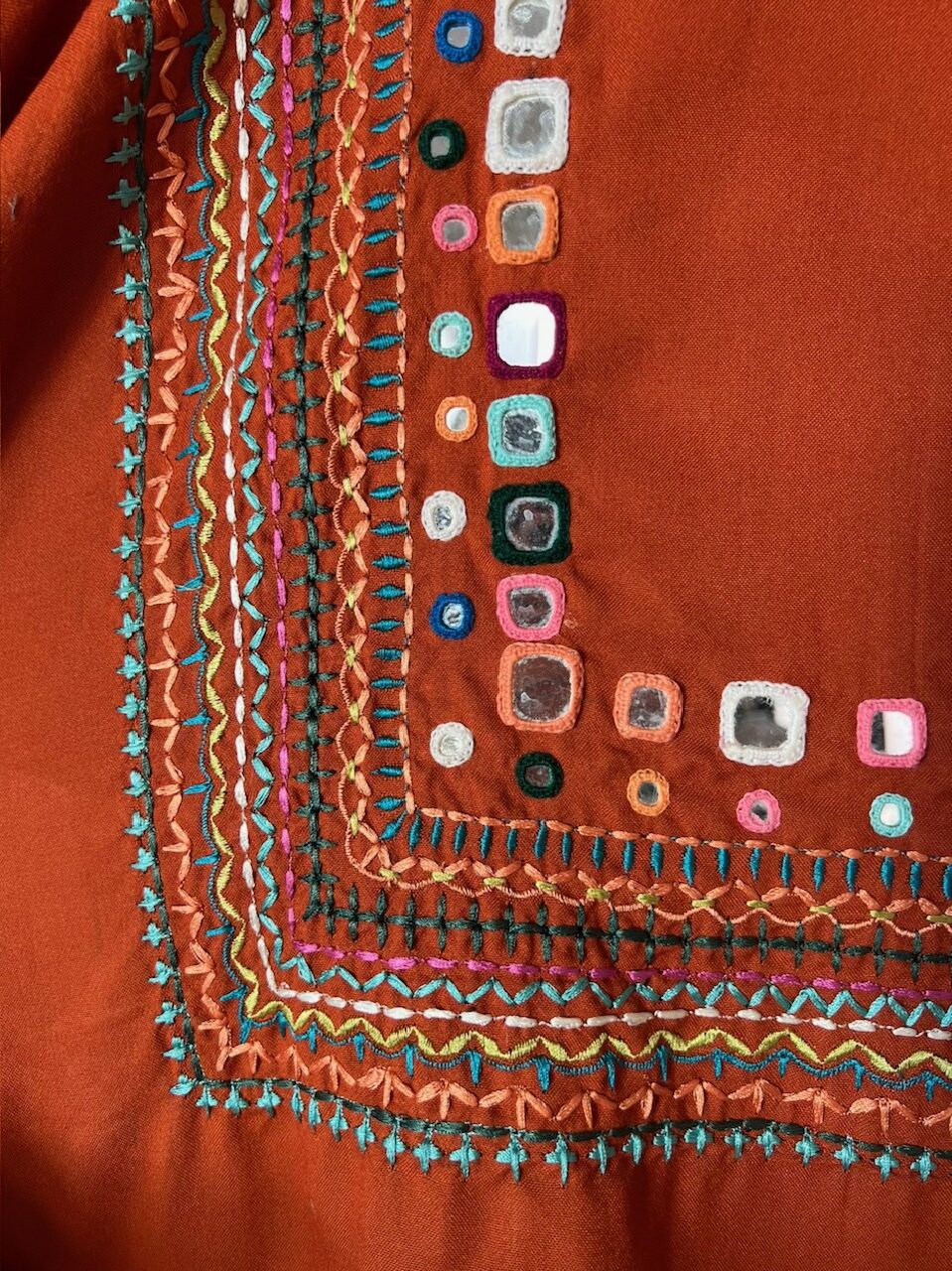 | shirt | machine embroidery in chawal tanka hand mirror work |
