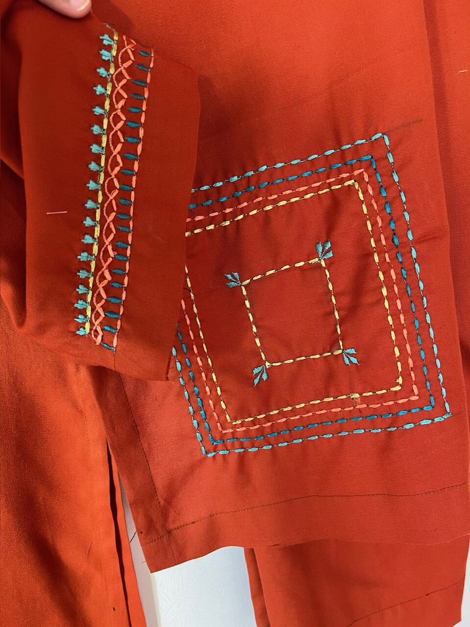 | dupta | marina shawl with machine embroider in chawal tanka one side corner |